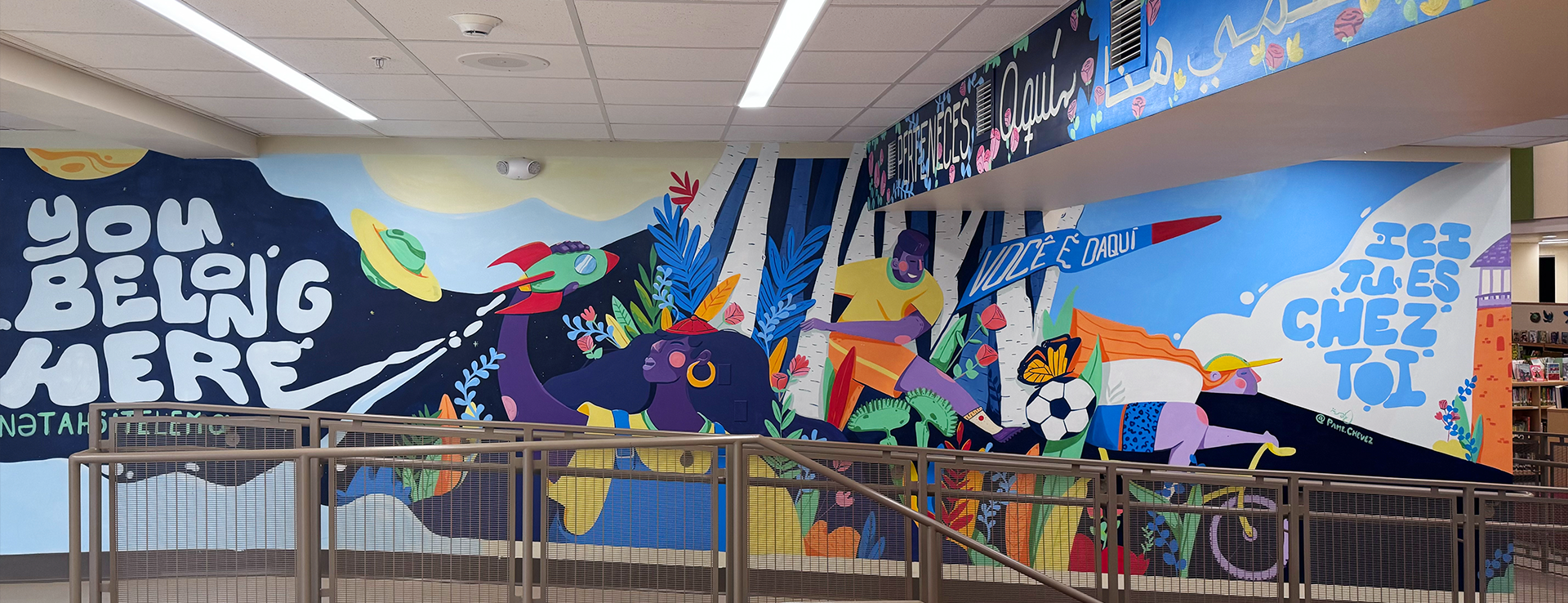 Reichee School, nestled in the heart of Portland, ME, is home to a vibrant and diverse student community. To add a splash of joy to their daily routine, the school decided to create a welcoming mural. This colorful project was brought to life with the enthusiastic participation of students and staff, who contributed their ideas and aspirations.